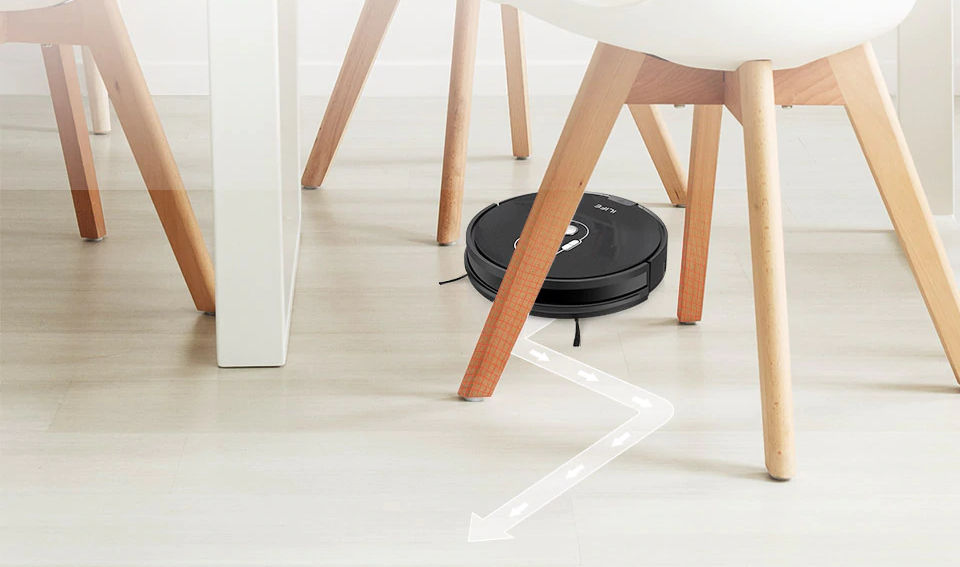 Automatinė ištrūkimo funkcija – A7 gali išvengti daugybės kliūčių kaip kėdės, stalai ar kiti baldai.