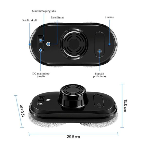 Stiprus prisiurbimas – 5600 Pa, leis robotui tvirtai laikytis ant paviršiaus ir atlikti valymo funkciją.